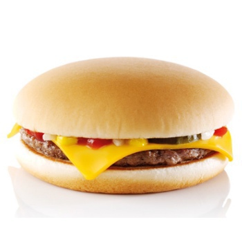 Чизбургер - рубленый бифштекс из натуральной 100%-й говядины с кусочком сыра Чеддер на булочке, заправленной горчицей, кетчупом, луком и кусочком маринованного огурца.